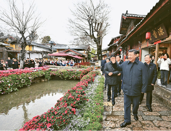 2025年3月19日至20日,中共中央总书记、国家主席、中央军委主席习近平在云南考察。这是19日下午,习近平在丽江古城考察时,与居民、游客互动交流。新华社记者 燕雁/摄