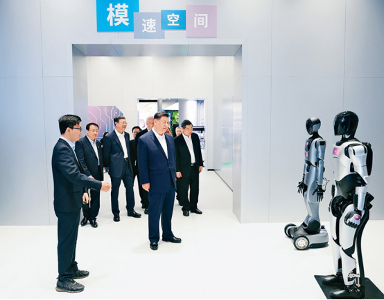 2025年4月29日,中共中央总书记、国家主席、中央军委主席习近平在上海考察。这是习近平在位于徐汇区的上海“模速空间”大模型创新生态社区,听取相关技术研发和企业生产经营介绍。 新华社记者 王晔/摄