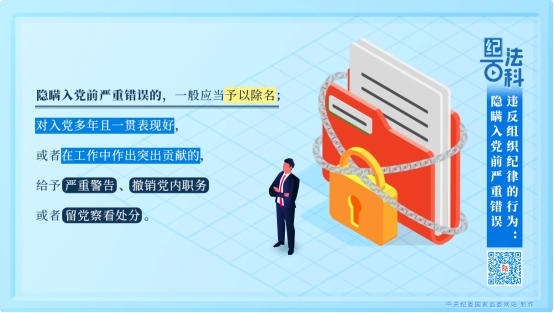 《中国共产党纪律处分条例》第八十一条第四款规定:隐瞒入党前严重错误的,一般应当予以除名;对入党多年且一贯表现好,或者在工作中作出突出贡献的,给予严重警告、撤销党内职务或者留党察看处分。